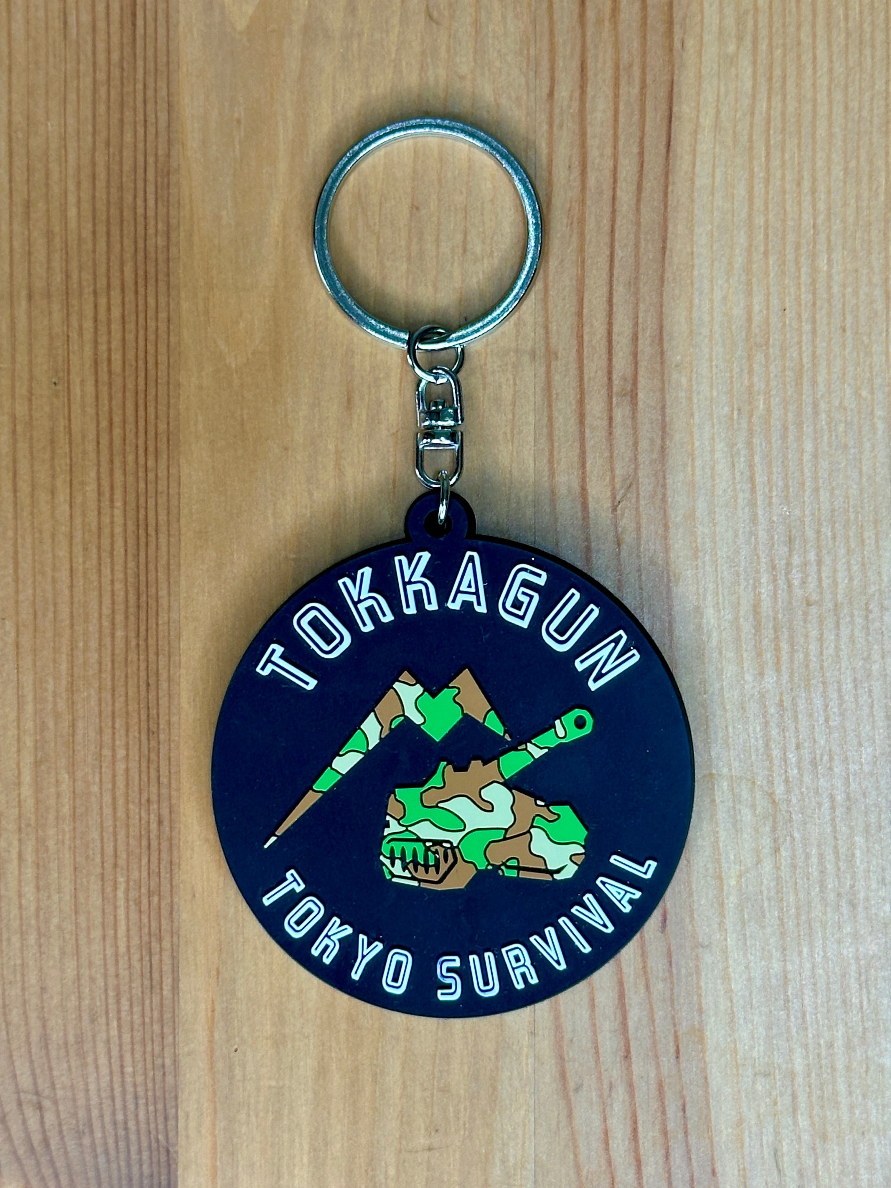 存在感あるラバーキーホルダー。 裏面のQRコードからいつでもトッカグンの東京サバイバルに飛べます。 直径60mm 厚み5mm